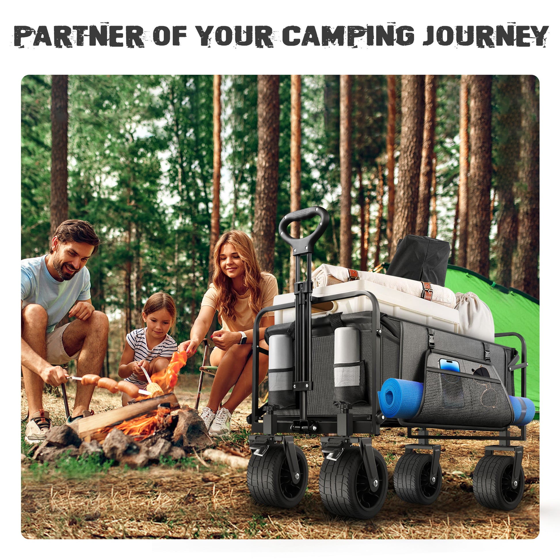 - Camping Collapsible Wagon with Tailgate & Extension Handle, Black