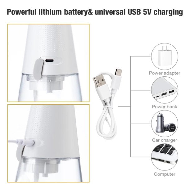 ifanze Cordless Water Flosser Teeth Cleaner, 350ML Portable and USB Rechargeable Oral Irrigator, IPX7 Waterproof, 3-Mode Water Flossing with 5 Jet Tips for Home and Travel