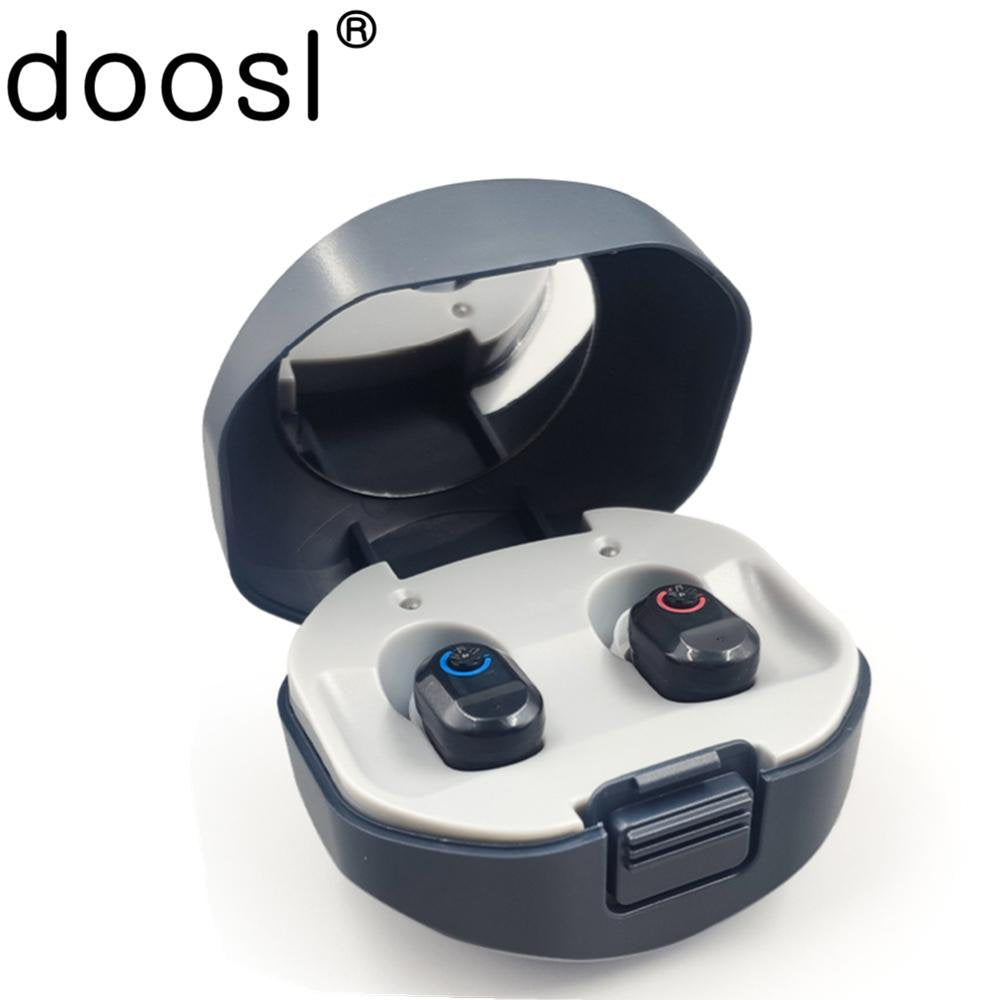 Doosl Hearing Aids with Portable Charging Case, Rechargeable Hearing Amplifiers for Both Ears, Noise Cancelling, Volume Adjustable, In-Ear Hearing Devices for Seniors, 1 Pair, Black