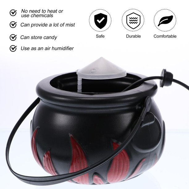 Halloween Cauldron with Mist Maker can create dense mist for your small pond or water tank in seconds, smelless and colorless, use electro and ultrasonic technology. You can put it in your pond, rockery, fish tank, vase, birdbath, etc. It creates a magical atmosphere.