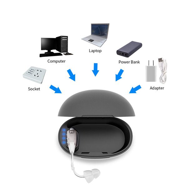 Our products are designed to amplify the frequencies most commonly associated with mild to moderate hearing loss, loss that occurs from long-term noise exposure or simply aging. The ergonomic and discrete design fits the ear for comfortable use. Small and exquisite , easy to carry with you. It is convenient to charge, and the battery life is up to 20 hours or more.