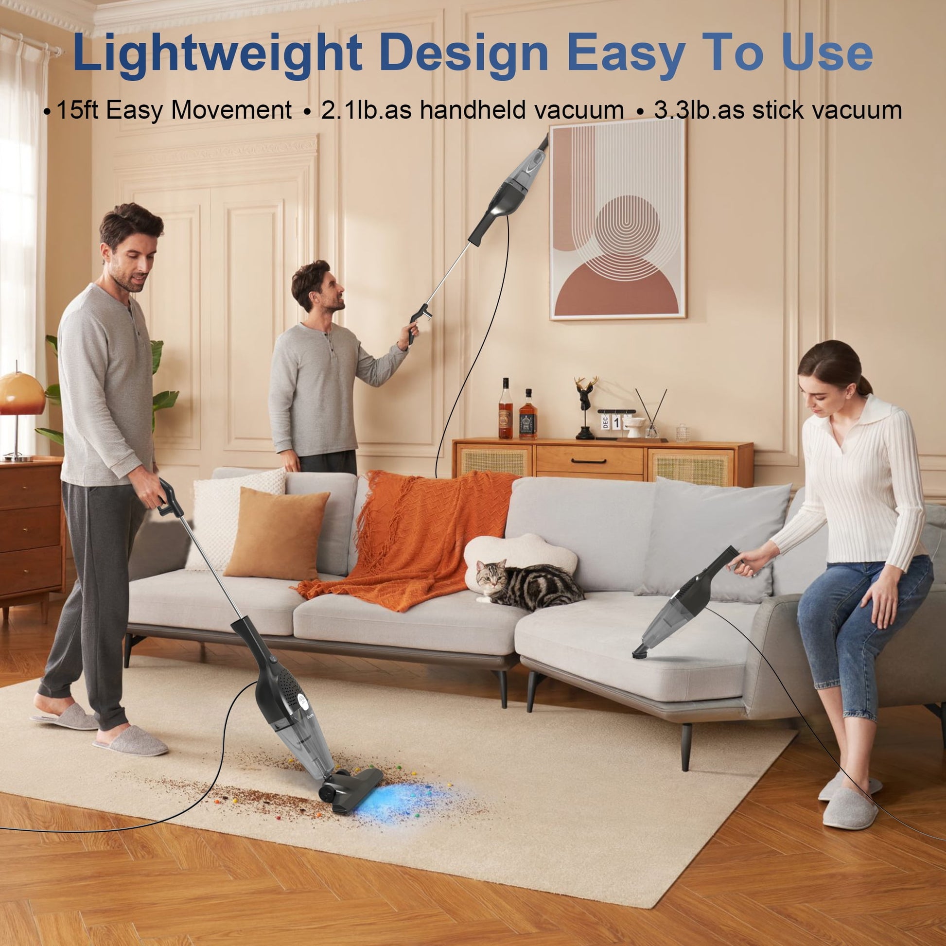 Ifanze 3-in-1 Lightweight Corded Stick Vacuum Cleaner, Powerful Suction Corded Handheld Vac, Grey Black