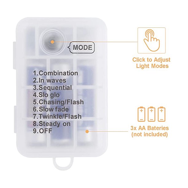 Mode controller: From fun to fabulous, 3 alternative lighting modes steady on, random flash, and fade are available. Add some easy festive touches.