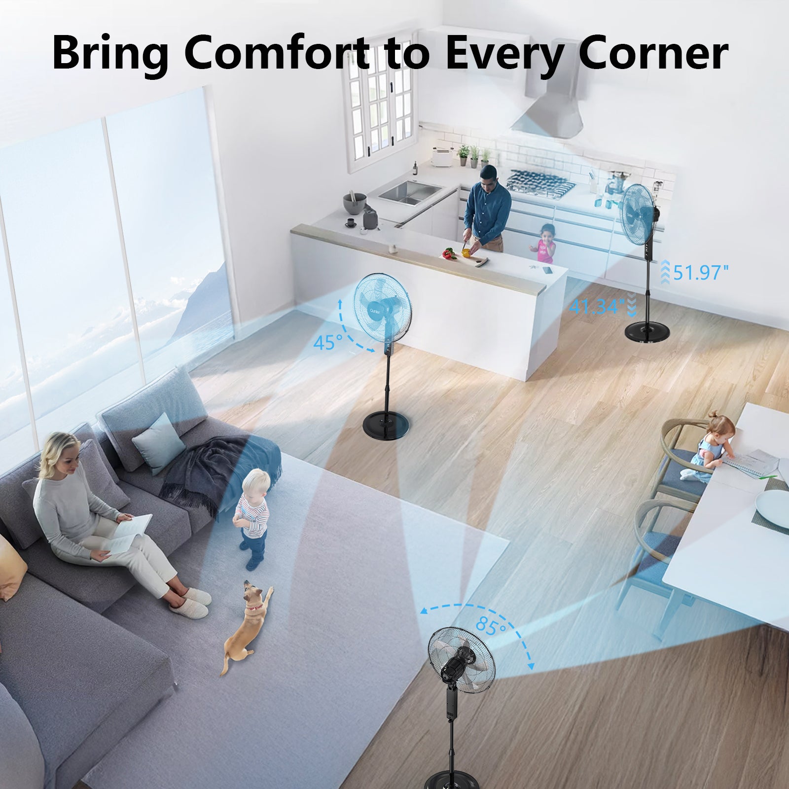 85-Degree Oscillation: With a widespread, steady airflow from side to side, standing fan provides a cooling breeze to everyone in an office or living room