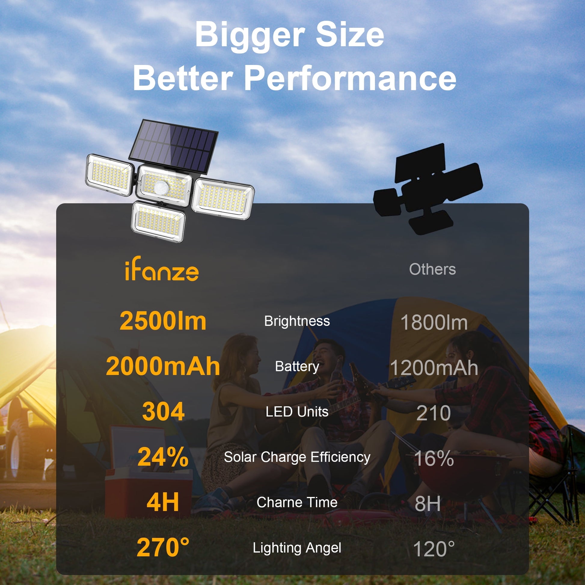 - iFazne 2500lm 304 lED solar lights outdoor 2pack
