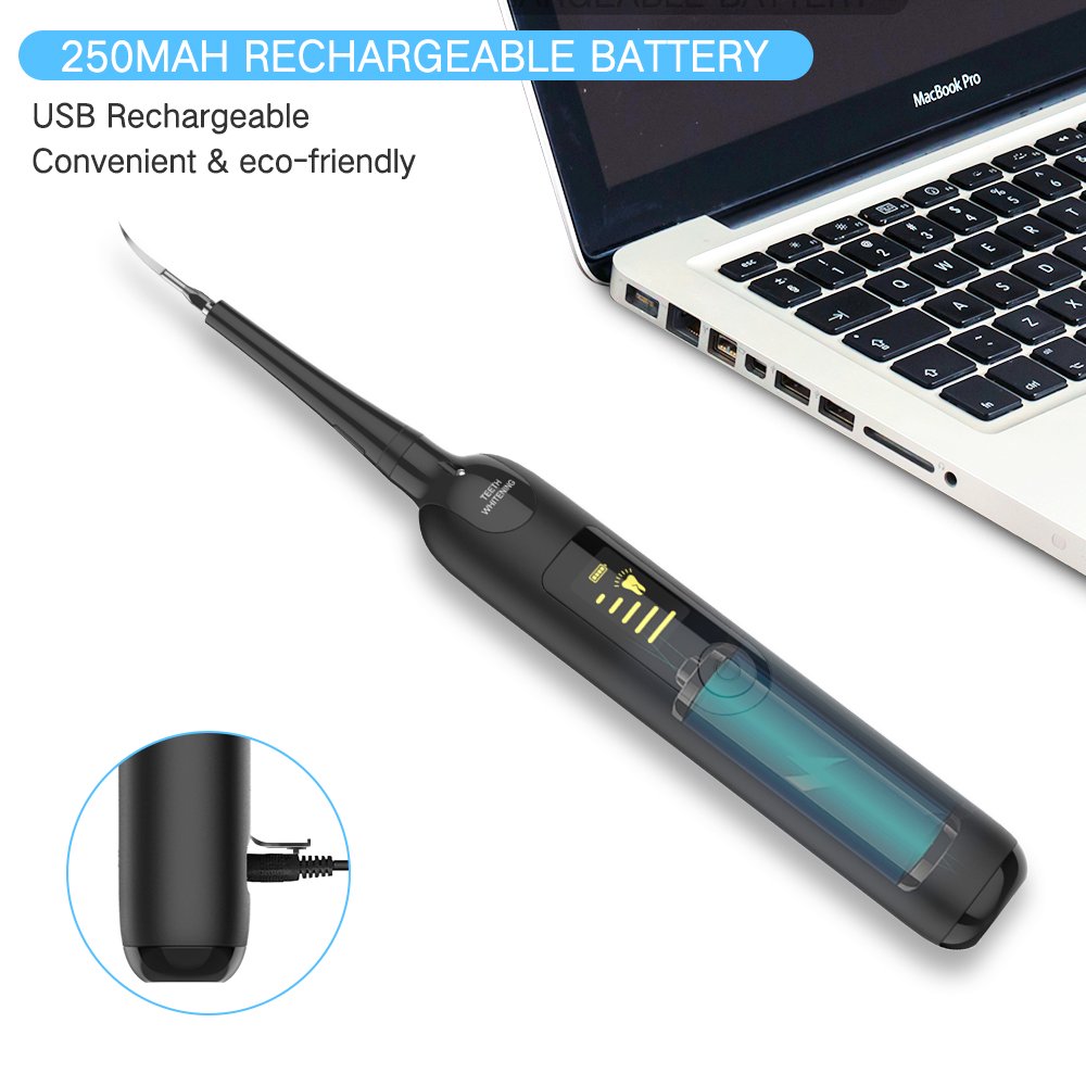 Rechargeable Battery: Built-in 250mAh battery support long runtime on a single charge. So you don't have to recharge the dental calculus remover frequently and don't need to replace batteries any more.