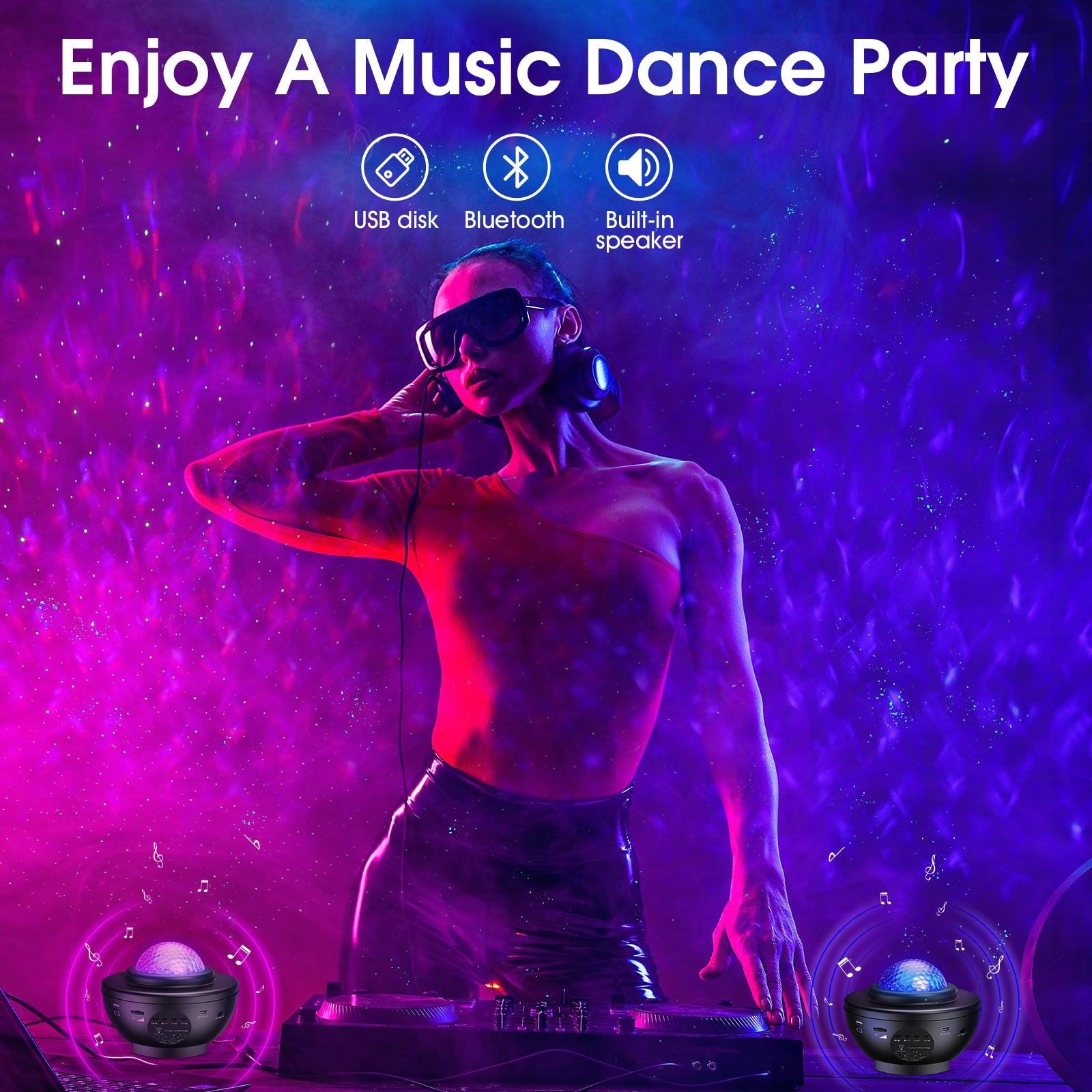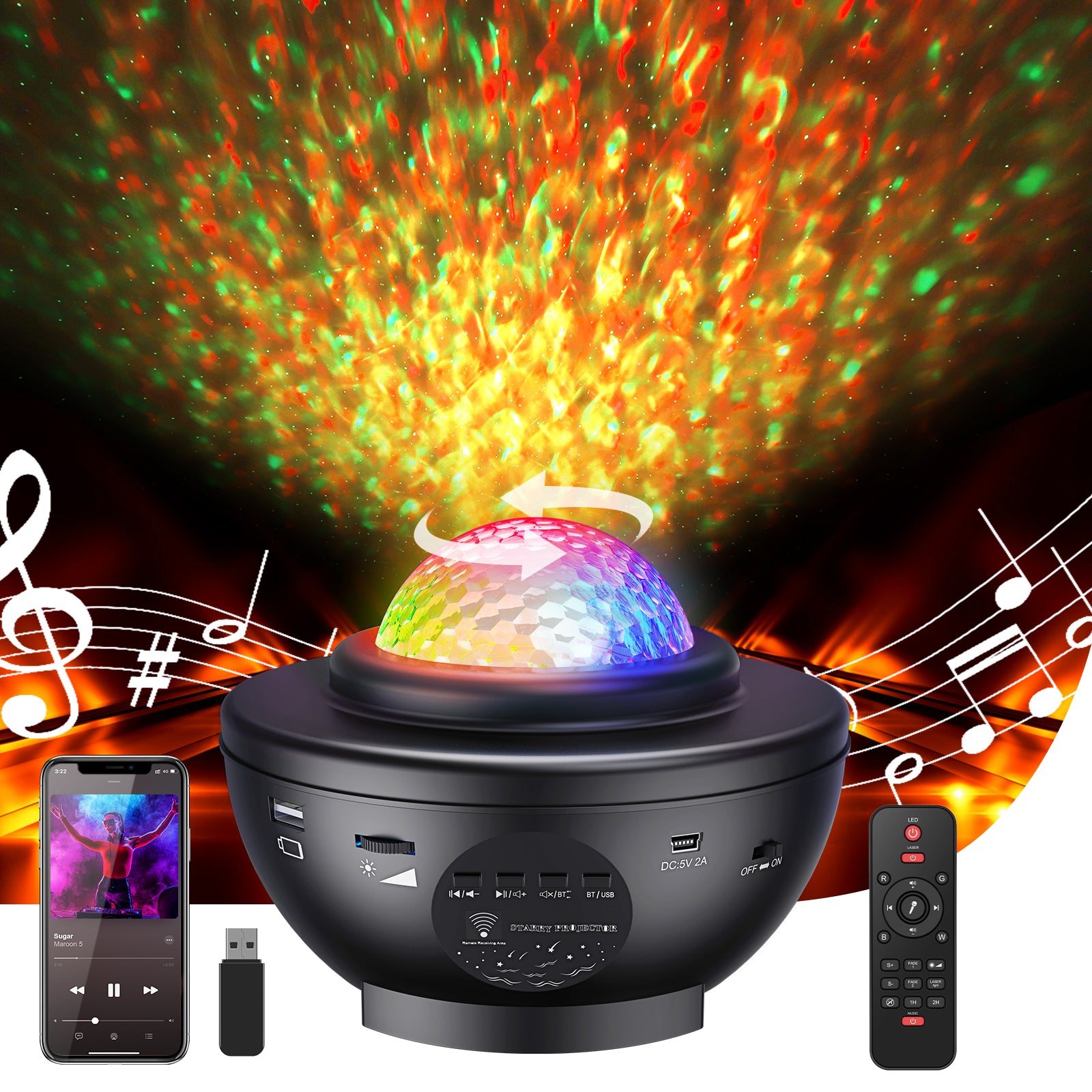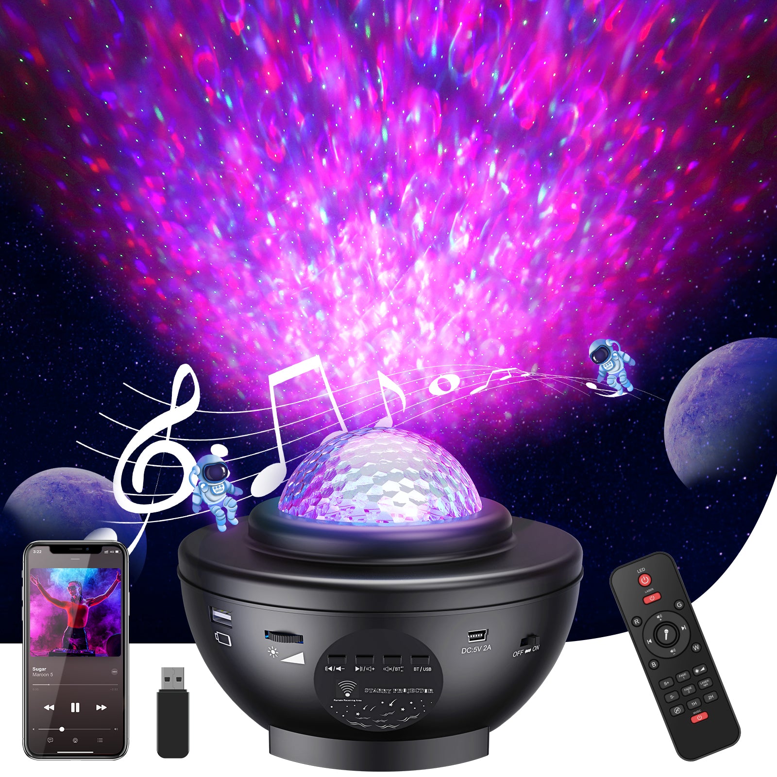 - 【Remote Control &Timer】Galaxy Projector for kids with remote can Control the ocean wave and star light on/off, adjust lightness, change lighting mode, music mode, volume. Also Built-in 1 hr, 2 hrs auto-off timer, Easy to access these settings without getting out of your bed.