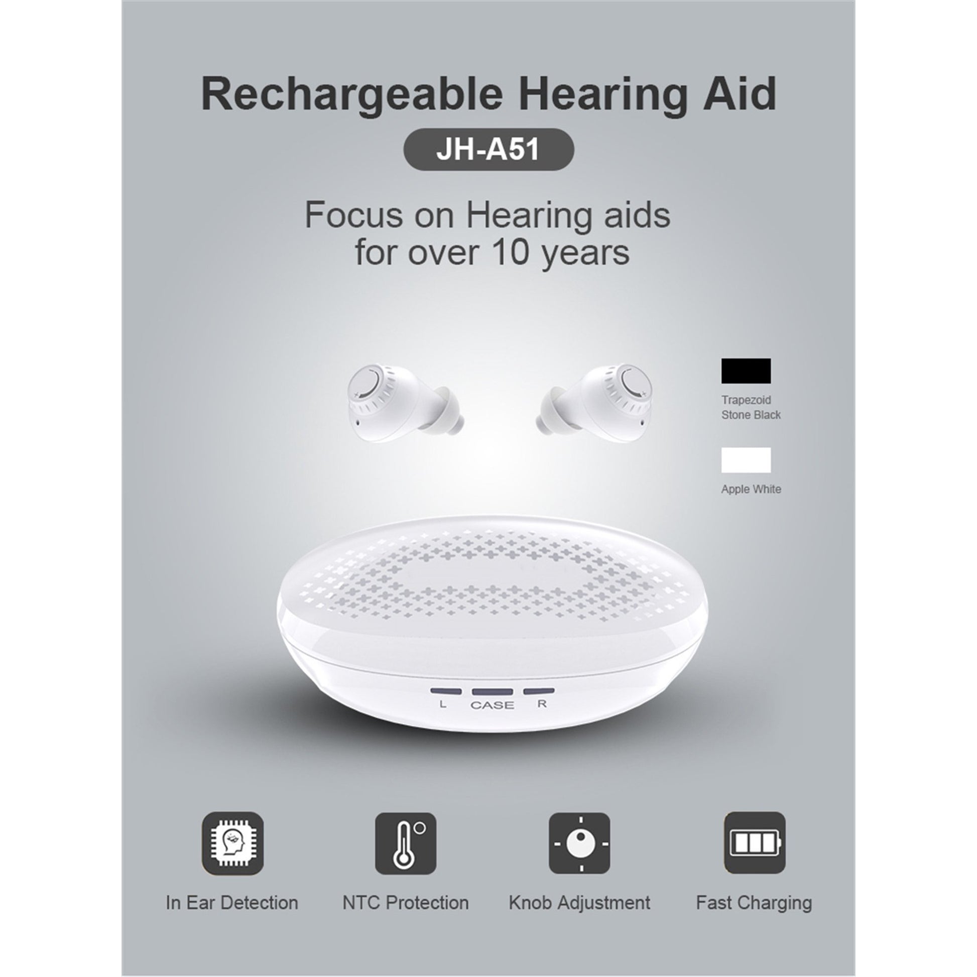 In-ear detection without squeal reduces the risk of hearing damage. Clear sound quality, beautiful appearance, sturdy and durable. With an adjustable amplification mode function, it can amplify speech background without missing any piece of sound, thus bringing you a clear listening experience without causing transmission loss. It's the second chance for you to feel the true world around you.