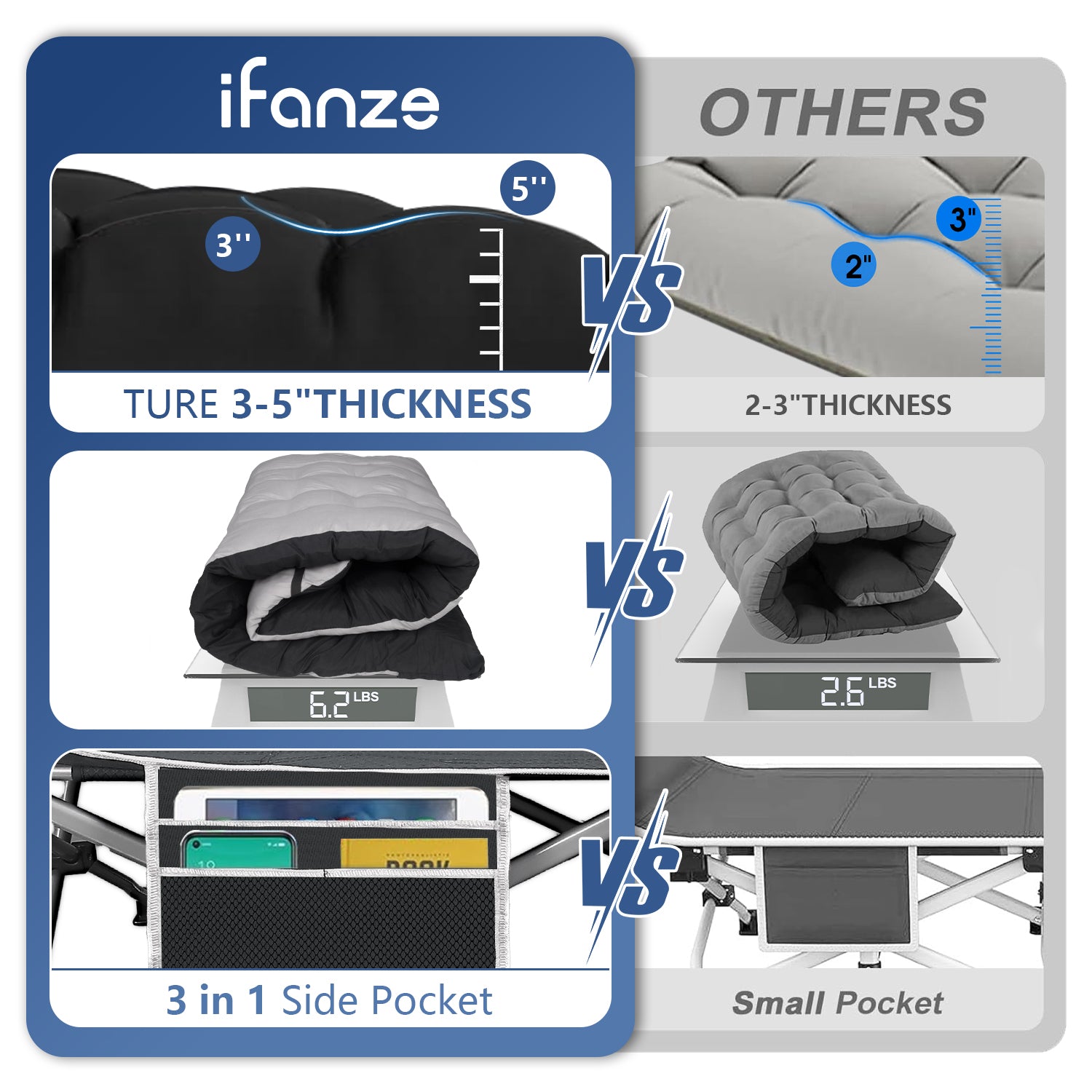 XXXL Folding Camping Cots for Adults, Oversized 83"* 32" Portable Guest Bed with 4 Inch Double-Sided Mattress, 800lbs Loading Sleeping Cot with Carry Bags for Hiking Home Office, Black
